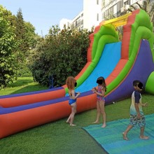 בשלב זה ממלאים את הבריכה עם הצינור. כאשר הבריכה מלאה לגמרי אפשר להעביר את הצינור לתחילת המגלשה כדי להשאיר את המגלשה רטובה כל זמן הפעילות.
